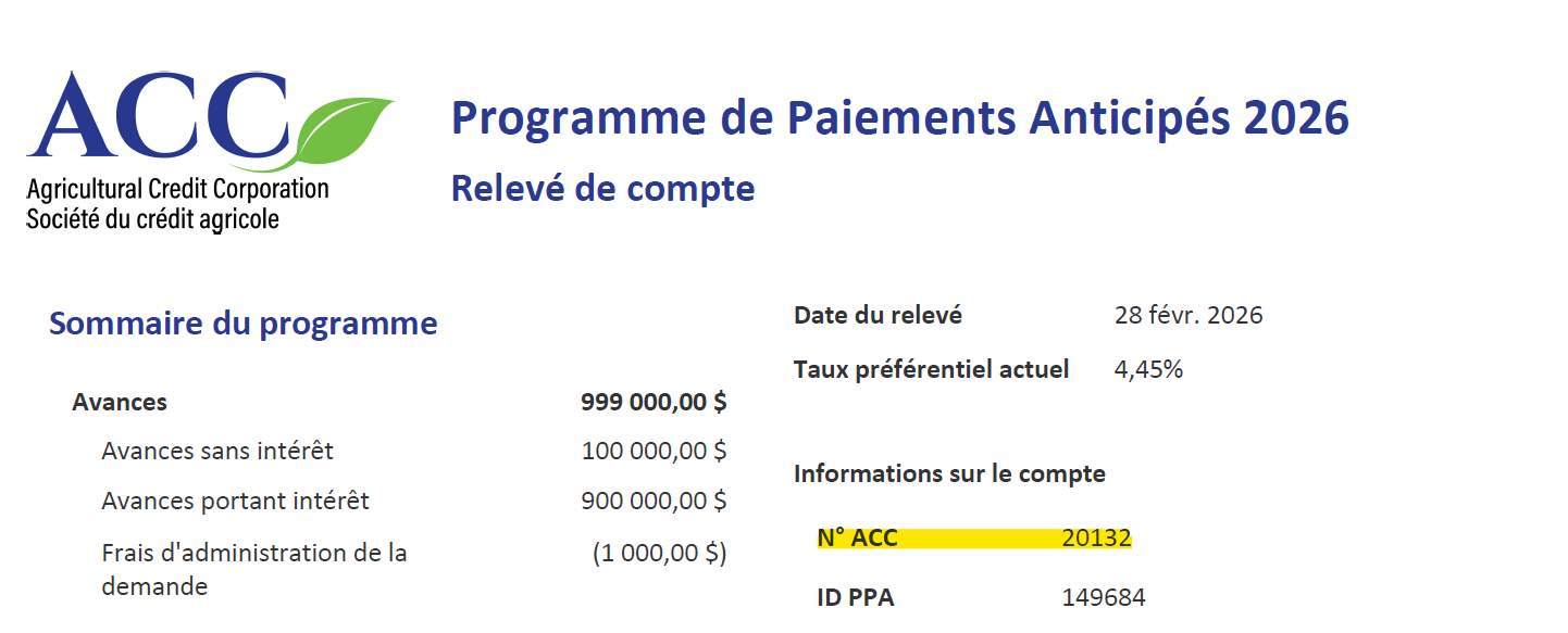 Vous pouvez également contacter un membre de l'équipe de remboursement de la SCA au : repayment@agcreditcorp.ca pour demander une copie du relevé.
