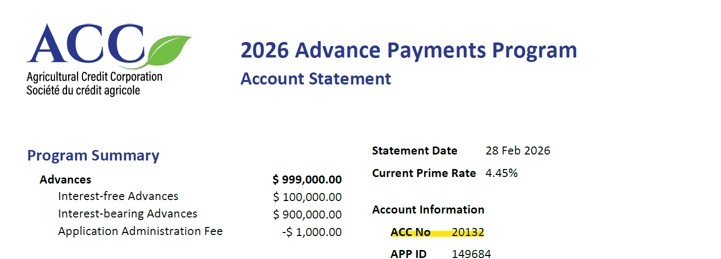Alternately, you may reach out to a member of the ACC Repayments Team repayment@agcreditcorp.ca to request a statement copy.